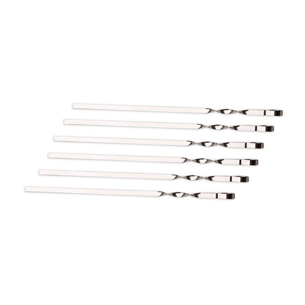 Набір шампурів Maestro 600 × 10 мм плоскі (6 шт) — зручний комплект для приготування страв на мангалі або грилі. Плоска форма шампурів допомагає утримувати продукти під час обертання.