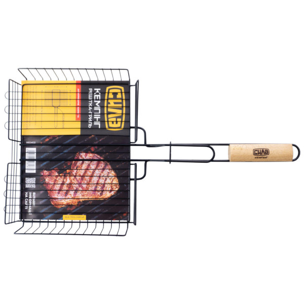 Решітка-гриль Сила розміром 310×240×55 мм з антипригарним покриттям призначена для приготування м’яса, риби та овочів на мангалі або грилі.