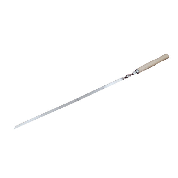 Міцний металевий шампур оснащений дерев’яною ручкою для комфортного тримання та захисту від нагрівання. Довжина 580 мм забезпечує зручне розміщення продуктів над вугіллям.