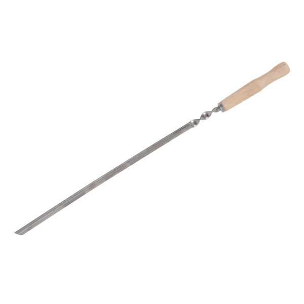 Міцний металевий шампур оснащений дерев’яною ручкою для комфортного тримання та захисту від нагрівання. Довжина 580 мм дозволяє зручно розміщувати продукти над вугіллям.