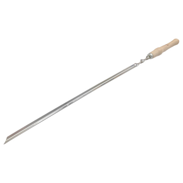 Міцний металевий шампур оснащений дерев’яною ручкою, яка забезпечує комфортне тримання та захист від нагрівання. Довжина 600 мм дозволяє зручно розміщувати продукти над вугіллям.